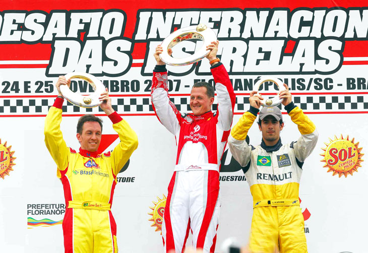 Confira aqui o vídeo com o momento em que Schumacher se deu conta do esquecimento. Com o troféu em mãos, Schumi deixou a capital catarinense e seguiu em seu jato particular, com destino a Suíça, onde reside com a família.