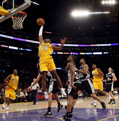 O ala-armador Kobe Bryant mais uma vez liderou o Los Angeles Lakers rumo à vitória, desta vez sobre ninguém menos do que o atual campeão da NBA, o San Antonio Spurs, por 102 a 97, em casa, na noite desta quinta-feira.