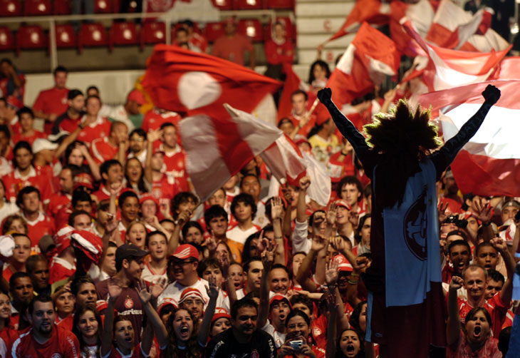 Disposta a azucrinar os gremistas, a torcida abusou de gozações que variaram do título mundial à queda à Segundona. O programa incluiu, antes dos músicos, um desfile de moda da grife do Inter. Seis modelos levantaram a platéia. Em certo momento, um deles apareceu sem camisa. Gerou gritinhos das meninas e vaias da ala masculina, que só acalmou quando o modelo vestiu uma camiseta.
