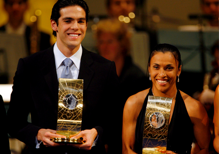 Campeã também no ano passado, Marta disse que não precisava dar dicas a Kaká sobre como repetir seu feito.