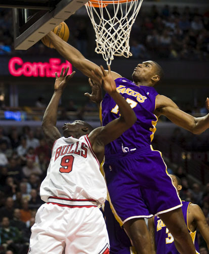 O ala-armador Kobe Bryant, com uma lesão na virilha, marcou apenas 18 pontos em 37 minutos. O ala Lamar Odom fez 17, com 16 rebotes. No Bulls, o ala sudanês Luol Deng foi o cestinha, com 26 pontos.