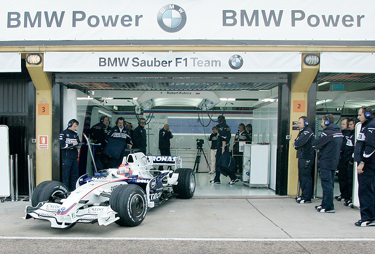 O piloto polonês Robert Kubica realizou nesta terça o primeiro teste com o F1.08, novo carro da equipe BMW-Sauber para o Mundial da Fórmula-1 2008, no circuito de Cheste, na Espanha.