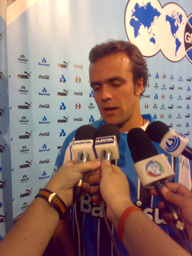 Junto com seu empresário, o meia chegou discretamente e deu poucas declarações. Não quis precisar o tempo que levará para estar em condições de estrear pelo Grêmio: