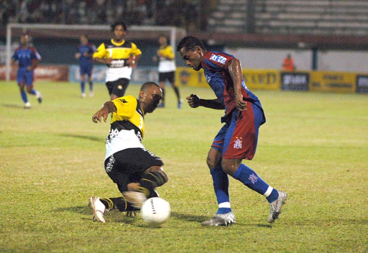 lançamento e tentou encobrir Zé Carlos, mas o goleiro se recuperou a tempo para fazer a defesa.