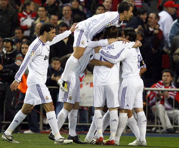 O Real Madrid mostrou neste domingo porque está disparando na liderança do Campeonato Espanhol. Lutando pelo bicampeonato, a equipe do técnico alemão Bernd Schuster dominou com imponência o clássico local com o Atlético de Madrid, venceu por 2 a 0 e chegou a 50 pontos. O clássico de Madri teve como destaque a grande presença de brasileiros em campo.