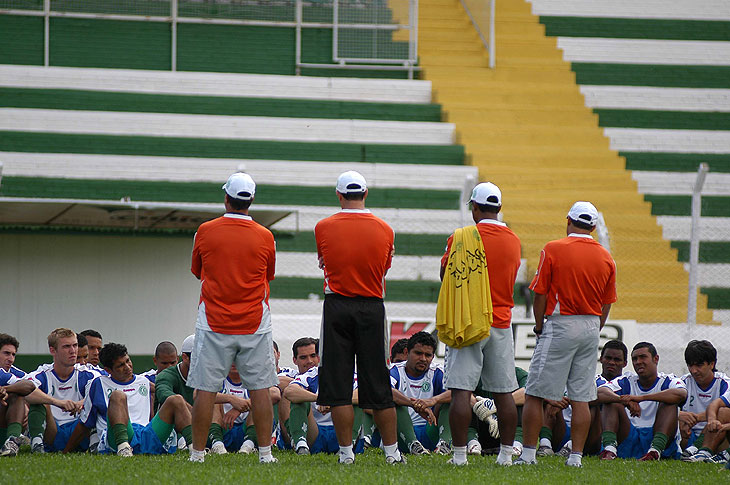Nesta segunda, o time se reapresentou e realizou trabalhos físicos com o preparador Canela. Nesta terça, o grupo faz um treino tático pela manhã e, à tarde, os titulares serão definidos.
