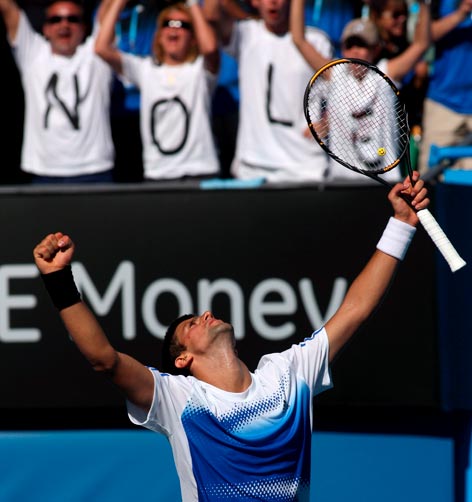 O adversário de Djokovic nas semifinais será o número 1 do mundo Roger Federer. Na outra semifinal, o espanhol Rafael Nadal pega a zebra francesa Jo-Wilfried Tsonga.