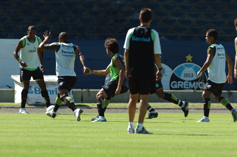 O Grêmio realizou nesta manhã o último treino antes da partida contra o Santa Cruz, neste sábado, no Olímpico. Como já havia anunciado, Vagner Mancini manterá a base da equipe que vem jogando e ocupa a terceira colocação no grupo 1 no Gauchão. A única dúvida é sobre o aproveitamento do atacante Jonas, que não enfrentou o Sapucaiense na rodada anterior devido a dores na virilha.