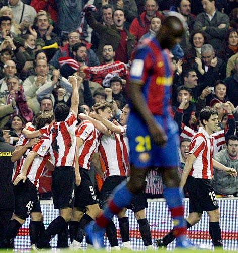 No entanto, foram os visitantes do Barcelona que fizeram o primeiro gol da partida. Após cruzamento para Messi, Aranzubia saiu para cortar a bola, que acabou sobrando para Deco. O meia tocou para Bojan marcar 1 a 0 para a equipe catalã.