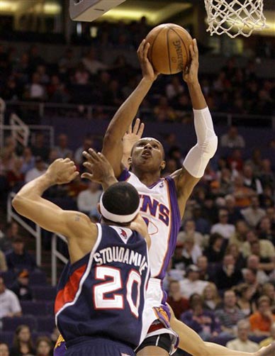 Com Leandrinho em quadra, o Phoenix Suns passou fácil pelo Atlanta Hawks por 125 a 92, em partida válida pela temporada regular da NBA, na noite desta terça-feira, no Arizona. O resultado mantém o Phoenix na briga pela ponta da Conferência Oeste, com apenas uma derrota a mais que o líder New Orleans Hornets.
