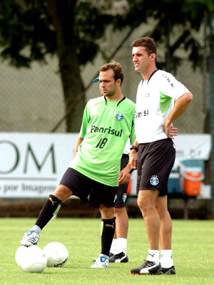 O que a torcida do Grêmio queria, aconteceu. O técnico Vagner Mancini utilizou o meia Roger entre os titulares nos trabalhos da tarde desta quarta-feira. As orientações do treinador visavam corrigir falhas na defesa e no ataque. O jogador foi testado ao lado de Tadeu no ataque na vaga de Jonas. Mancini também retirou o volante Willian Magrão para entrada do jovem Maylson no meio-campo.