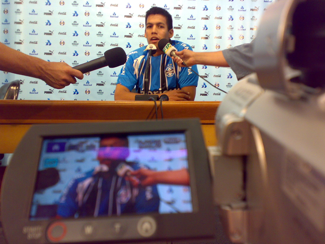 Esperança do Grêmio para dividir com Roger a responsabilidade da articulação do meio-campo, Julio dos Santos foi apresentado nesta quinta-feira no Olímpico. Aos 24 anos, o meia paraguaio garante estar pronto para jogar. Mas precisará esperar ao menos 10 dias até a regularização.