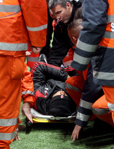 foi para o vestiário de maca, após sentir dores nas costas. O time de Carlo Ancellotti se concentra agora para a partida de quarta-feira contra o Arsenal, em Londres, pela Copa dos Campeões. A Juventus jogou contra a Roma e venceu por por 1 a 0.