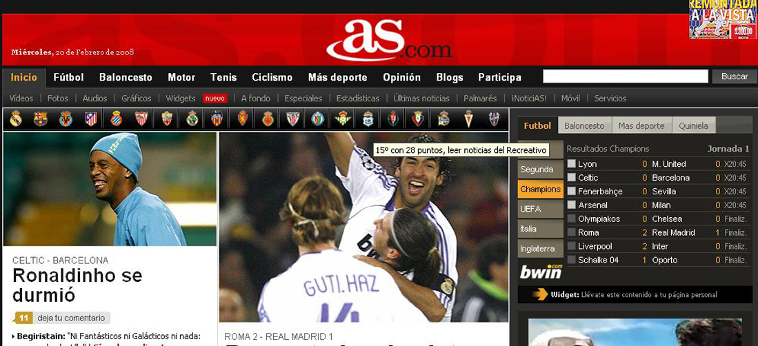 A assessoria de imprensa do Barcelona informou que Ronaldinho enfrentou problemas de trânsito para chegar ao estádio, mas a informação não convenceu o técnico Frank Rijkaard. "É possível que Rijkaard coloque Messi no banco, junto com Ronaldinho, para permitir a entrada de Iniesta pela esquerda e ganhar um homem de criação, auxiliando Eto'o e Henry", afirma o jornal.