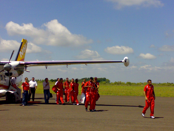 O único temor em viajar em dois aviões para o jogo contra o São Luiz, em vez de perder horas na estrada, eram as possíveis turbulências e sustos dentro das pequenas aeronaves. No entanto, o Inter chegou sem sobressaltos a seu destino. Já em Ijuí, onde desembarcou após descer no aeroporto de Santo Ângelo e seguir o restante do caminho por terra, o vice de futebol Giovanni Luigi comentou a tranqüilidade da viagem: