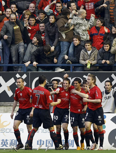 Já o quarto colocado, Atlético de Madrid, perdeu para o Osasuna por 3 a 1. Sola, Vela e Font marcaram para o Osasuna, e o uruguaio Forlán descontou para o Atlético.