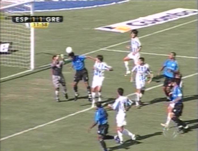Em um jogo movimentado, o Grêmio empata a partida aos 12 minutos. Willian Magrão sobre mais que todo mundo na pequena área do Esportivo e manda para o fundo da rede de Donizette.