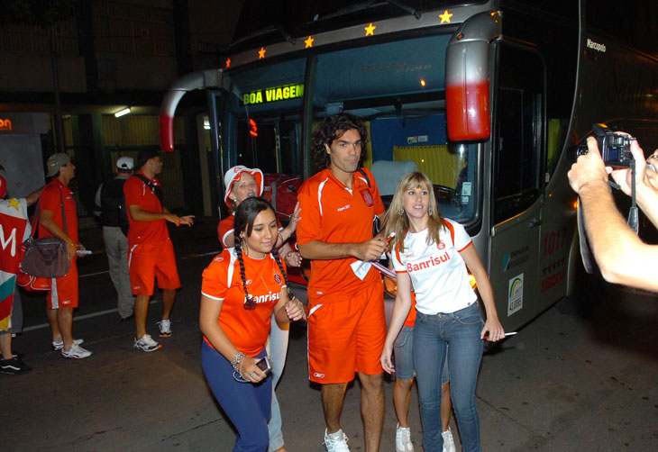 A delegação do Inter chegou a Caxias do Sul na noite desta terça-feira para o jogo desta quarta-feira contra o Juventude, pelo Gauchão, no Estádio Centenário. Cerca de 10 torcedores aguardavam os jogadores colorados em frente ao hotel, segundo o repórter da Rádio Gaúcha André Silva.