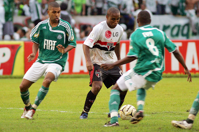 O Palmeiras contou com a ajuda de jogadores formados no São Paulo (e com três pênaltis) para vencer o rival de virada na tarde deste domingo, no Estádio Santa Cruz, em Ribeirão Preto. O Verdão viu o Tricolor Paulista sair na frente no placar, com gol de Adriano, mas conseguiu a virada. Kléber igualou a contagem ainda no primeiro tempo, e Denílson cobrou pênalti para colocar o Alviverde na frente na segunda parte do jogo. Já o chileno Valdívia converteu outro pênalti. Na terceira oportunidade do Verdão da marca da cal, Diego Souza fechou o placar por 4 a 1.