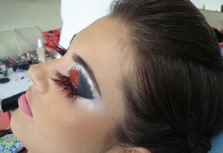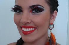 O glitter pode ser usado como um ótimo artifício de iluminação. Sombras iluminadoras, com brilho e fluor destacam os olhos e conferem alegria ao visual. Reforce o olhar com cílios postiços e generosas camadas de máscara. Complete o look com um batom discreto. A regra olhos chamativos e boca pálida vale também em dias de Carnaval, afinal você quer estar linda e não quer ser confundida com uma palhaça.