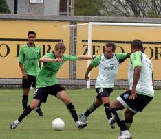 Roger, na foto treinando entre os titulares, já está pronto, diz Mancini