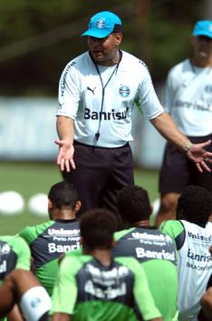 O técnico Celso Roth comandou na tarde desta terça-feira, no gramado principal do Estádio Olímpico, o primeiro coletivo desde que reassumiu o comando técnico da equipe do Grêmio. Ao contrário do que se especulava, o novo comandante deve colocar em campo um esquema semelhante ao que era usado por Vagner Mancini, com Roger no meio-campo e dois atacantes na frente.