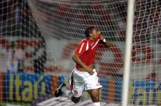 Adriano comemora após abrir o placar: Segundo Hélio dos Anjos, Nilmar cometeu falta na jogada que originou o gol