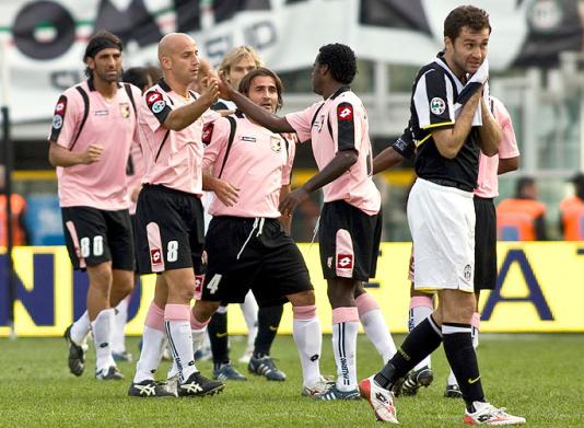 A Juventus recebeu o Palermo no Estádio Delle Alpi, em Turim, neste domingo, e acabou derrotada por 2 a 1, no Campeonato Italiano. Sem o meia tcheco Nedved, que só entrou na segunda etapa, a Juve amargou um tropeço em casa, se mantendo com nove pontos. Já os visitantes chegaram aos 12 pontos, se aproximando dos líderes Lazio, Inter de Milão e Udinese, que, neste domingo, venceu o Torino por 2 a 0.