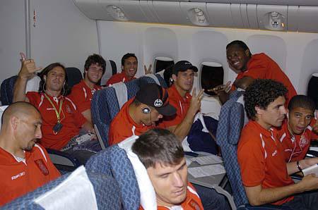 O Inter já está no Cidade do México, de onde segue para Guadalajara, a uma hora de avião da capital mexicana. Após 11 horas de viagem desde Porto Alegre, o cansaço é visível. Os jogadores aproveitam qualquer tempo disponível para sentar e repousar. O vôo teve algumas turbulências, o que atrapalhou o sono contínuo. Ventos de até 117 km/h atingiram a frente do avião, quando o normal é até 50 km/h.