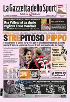 Gol de Ronaldo foi para a capa do Gazzeta Dello Sport (no canto esquerdo)