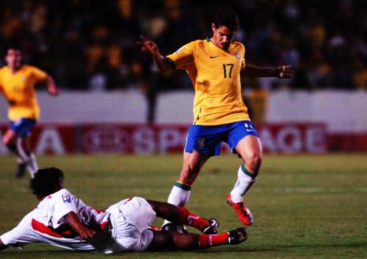 | Brasil 3x0 Peru - Eliminatórias Sul-Americanas Dia: 1º de abril de 2009 (quarta-feira). Local: Estádio Beira-Rio, em Porto Alegre. Árbitro: Sergio Pezzotta, auxiliado por Gustavo Esquivel e Diego Romero (trio argentino). Gols: Luís Fabiano (B), aos 17min e aos 26min, no 1º tempo; Felipe Melo (B), aos 18min, no 2º tempo. Cartões amarelos: Solano e Butrón (P). |