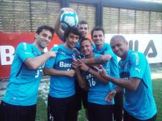 No trabalho físico realizado pelo grupo gremista em General Severiano nesta sexta, no Rio de Janeiro, os jogadores fizeram festa pelas convocações de Victor e Douglas.