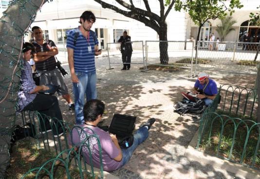 Segundo a assessoria do hotel, cerca de cem jornalistas foram credenciados. Outros 300 tiveram seus pedidos de credenciamento negados. Na sala destinada à coletiva, ouve-se do português ao francês, passando pelo espanhol e pelo inglês — há jornalistas de todas as partes do Brasil e do mundo.