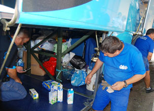 No fim da manhã desta sexta-feira, no Cais do Porto, o ônibus oficial do Grêmio entregou duas toneladas de alimentos e outras doações para as vítimas das chuvas no Rio de Janeiro. Funcionários do clube descarregaram também produtos de higiene pessoal, material de limpeza e brinquedos.