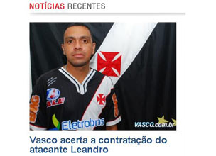 Leandro foi anunciado oficialmente pelo Vasco por volta do meio-dia desta quinta-feira. No site do clube carioca, o jogador aparece em foto com a camisa cruzmaltina. A apresentação ocorre ainda nesta tarde.