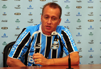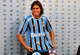 Após realizarem exames médicos, os dois foram apresentados oficialmente na sala de imprensa do Estádio Olímpico. Na próxima quinta-feira, o volante Gilberto Silva deve chegar a Porto Alegre para vestir a camisa do Grêmio e também reforçar o grupo.