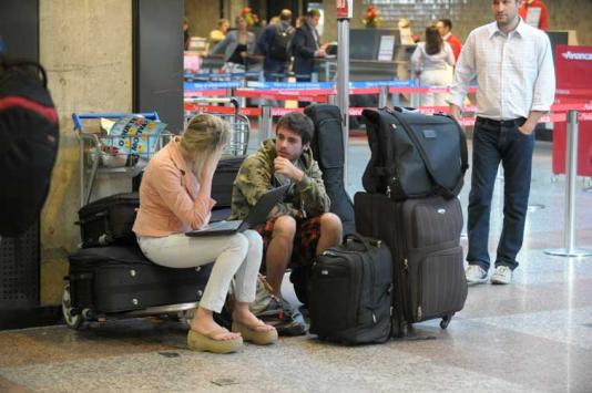 O aeroporto Salgado Filho está movimentado nesta manhã. Em filas nos balcões das companhias aéreas, passageiros reclamam da falta de informações sobre os cancelamentos e atrasos — reflexo dos voos suspensos na terça-feira devido às cinzas vulcânicas que atingiram a Capital.