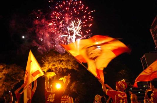 Uma queima de fogos encerrou a missa alusiva ao centenário colorado na Catedral Metropolitana nesta noite. Centenas de colorados estiveram presentes para celebrar o culto ministrado pelo arcebispo Dom Dadeus Grings, da Arquidiocese de Porto Alegre. Vestindo camisetas vermelhas, os colorados puderam orar e pedir bênçãos para os próximos anos do clube do coração.