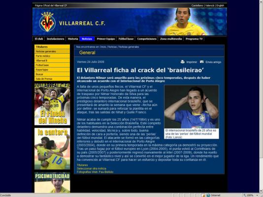 O Villarreal anunciou nesta sexta-feira, em seu site oficial, a contratação de Nilmar. O clube publicou um texto chamando o atacante de craque do Brasileirão e destacando a habilidade, a velocidade, a técnica e a boa definição do jogador. Ele é considerado pelo time espanhol "uma das pérolas do futebol mundial".