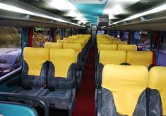 O veículo, que pode receber até 44 pessoas, é confortável e tem aparência moderna no seu espaço interior. Conta com três televisões, rádio, banheiro e bebedouro.