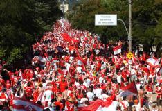 Milhares de colorados marcharam pelas ruas de Porto Alegre neste sábado, em comemoração ao aniversário de cem anos do clube. Havia gente de todas as idades, crianças e velhos, mas sobretudo muitos jovens. Em um clima de grande festa, alguns torcedores seguiam de bicicleta, várias pessoas levaram seus cachorros, os carros passavam buzinando, as pessoas acenavam das janelas.