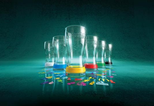 Para promover os Jogos Olímpicos de Londres, a rede McDonald’s lança uma coleção de copos exclusivos. Os Copos Olímpicos de Londres vêm com pulseiras coloridas, em referência às cores dos aros do símbolo das Olimpíadas.
