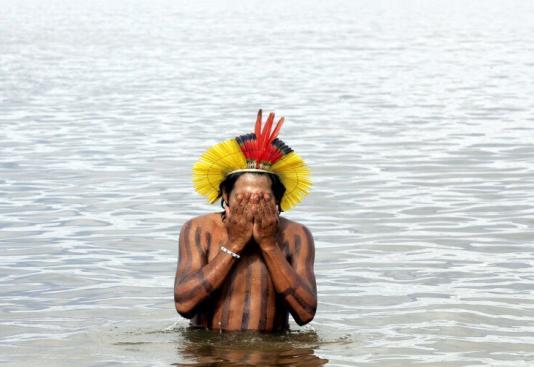 Protestos vêm desde a década de 80. Em 2008, índio entra no Rio Xingu durante manifestação