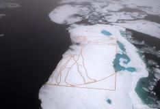 Especializado em arte aérea, John Quigley viajou para a região a bordo do navio quebra-gelos da entidade ecológica e reproduziu o desenho de Da Vinci - um homem em duas posições sobrepostas com as pernas e os braços abertos - a 800 quilômetros do Polo Norte.