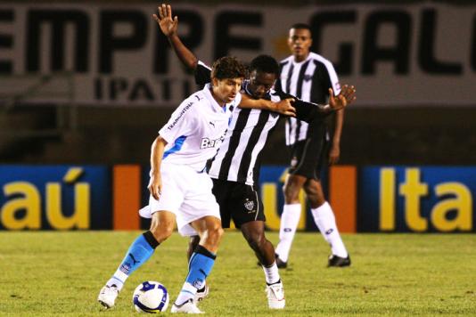O Galo colocou três jogadores para tabelar sobre Ruy no lado direito da área do Grêmio: Thiago Feltri, Júnior e Éder Luís. Por ali, principalmente o lateral Feltri conseguiu as melhores chances. Em uma delas, roubando a bola de Léo, ele obrigou o goleiro Victor a fazer uma defesa sensacional.