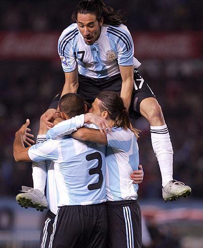 | Andújar; Díaz, Demichelis e Heinze; Gago (Zanetti), Mascherano, Jonás Gutiérrez e Verón; Messi, Tevez (Burdisso) e Aguero (Diego Milito). | Ospina; Perea, Zapata, Yepes e Armero (Quintero); Zúñiga, Vargas, Guarín (Ramos) e Marín; Rentería e Falcao García (Rodallega). |