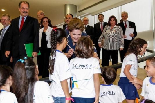 — Não seremos um país que gera conhecimento, que respeita os seus cidadãos, sem alfabetização na idade certa. Essa é uma maneira de dizer, usando o nosso hino, que amamos os filhos deste solo — afirmou a presidente Dilma.