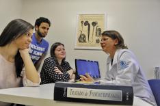 Reunidos em uma sala no Mãe de Deus Center, em Porto Alegre, para esclarecerem dúvidas sobre o curso que pretendem fazer, os vestibulandos Lana Webber, João Paulo Nogueira Santos e Gabriele Sampaio tentam se acomodar nas três cadeiras próximas à mesa onde a fonoaudióloga e professora da Universidade Federal de Ciências da Saúde de Porto Alegre (UFCSPA) Isabela Menegotto atende alguns de seus pacientes.