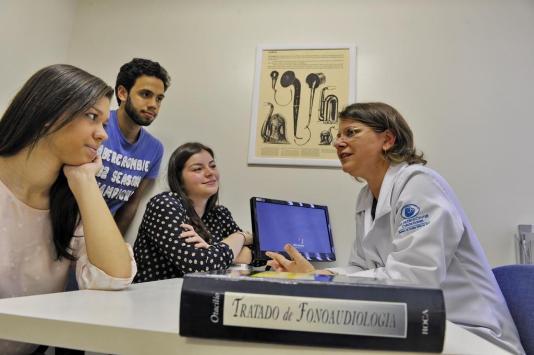 — Audição, por exemplo, fica a cargo de um médico, em países do Exterior. Há lugares em que fala e linguagem são separadas, ficando a cargo de profissionais diferentes.