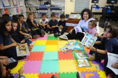 —Eu já fazia contação de histórias, trabalhos semididáticos e empréstimo de livros na minha biblioteca. Então tivemos problemas de transporte, os horários não batiam, e a direção me convidou a vir fazer o trabalho na escola. Eu comecei a trazer meus livros, o baú da leitura, a mala da leitura e contar histórias, fazer projetos lúdicos na escola. O principal objetivo é desenvolver o gosto pela leitura, formar novos leitores — explica Beth.